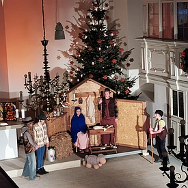 - Für das Krippenspiel zu den Christvespern am Nachmittag (15 und 17 Uhr) bereitet Karsten Klose mit einigen Kindern ein traditionelles, gereimtes Krippenspiel vor. Die Verkündigung übernimmt Pfr. Gerald Brause.