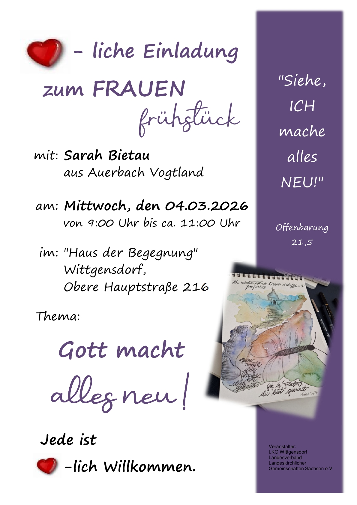 Der Vortrag am Mittwoch, 4.3., 19:30 Uhr wird bei uns in der Wittgensdorfer Kirche stattfinden.