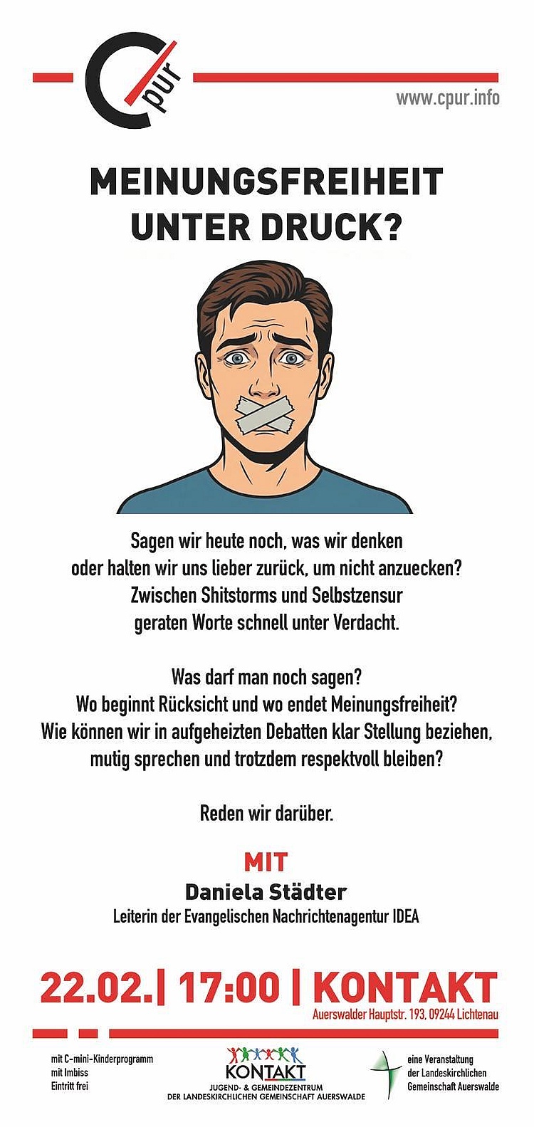 Nächstes C-pur am 22. Februar: Meinungsfreiheit unter Druck? mit Daniela Städter, Leiterin von IDEA