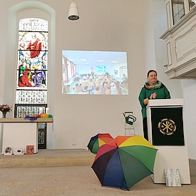 Katharina hat noch von Erlebnissen in ihrer Mädelscharzeit berichtet - sogar ergänzt mit ein paar Originalton-Einspielungen, als sie mit den Mädels ältere Gemeindeglieder zu ihren Lebens- und Glaubenserfahrungen interviewt hatten.