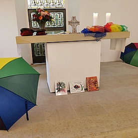 Unsere Band - dieses Mal klein, aber fein - wird den Gottesdienst mit passenden Lieder musikalisch ausgestalten.