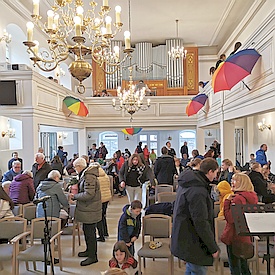 Nach dem Gottesdienst gab es großes Lob und Dank von Besuchern für alle Beteiligten, weil diese Stunde des Zusammenseins eine große Ermutigung durch Wort, Musik und Gemeinschaft für sie war.