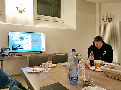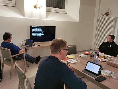 Wöchentlich treffen sich inzwischen 12-18 Leute, um gemeinsam zu essen, ein Thema zu bedenken und ins Gespräch zu kommen. Wer möchte, darf gern zu den noch folgenden Terminen "schnuppern" kommen. Seit 2.10. alles hinten in der Kirche mit Präsentation am Bildschirm.