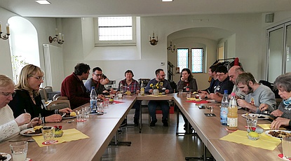 Eine lockere Begegnung beim Essen im hinteren Teil der Kirche war ein guter Einstieg. Dabei soll es auch bleiben.