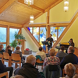 RückblickTrotz Corona-Vorschriften und FFP2-Maske haben wir dankbar unseren Gottesdienst zum Ewigkeitssonntag im Haus der Begegnung feiern können. Ausgestaltet wurde er vom Posaunenchor (vor dem Haus), mit Klaviermusik, Liedvorträgen zur Gitarre und natürlich einer lebendigen Predigt zum Thema "Leben, Sterben und Ewigkeit" - eine Stärkung für alle und besonders für die Angehörigen, die im letzten Kirchenjahr einen lieben Angehörigen verloren haben.