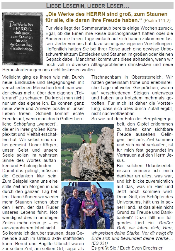 Herzliche Einladung im Namen aller beteiligten Gemeinden und Gemeinschaften aus Auerswalde und Wittgensdorf, Ihr Pfr. Gerald Brause