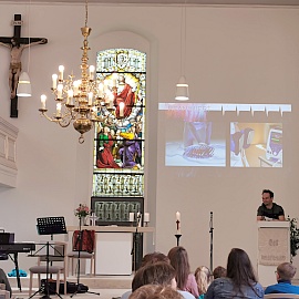 Große Sorgen wurden geäußert, weil das Kruzifix über der linken Emporenbrüstung angebracht werden soll, um eine dauerhafte Projektionsmöglichkeit an der Altarwand zu schaffen. Unsere Orgel ist zurzeit nicht spielbar und kann nur notdürftig nutzbar gemacht werden. Eine Grundsanierung wird leider erst in einigen Jahren möglich sein.