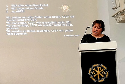 Predigen wird Susan Ullmann zum großen "ABER" unseres Christseins, welches Paulus in 2. Korinther, Kap. 4 beschreibt.