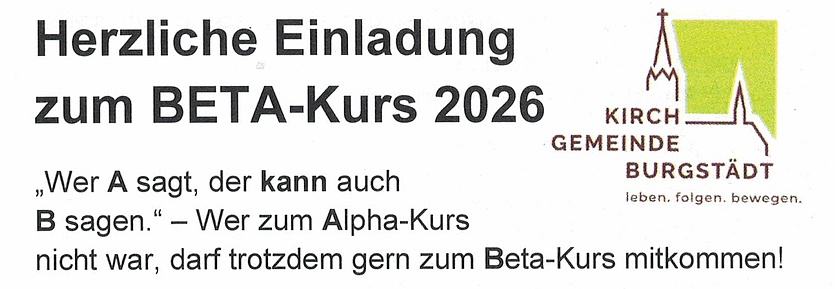 Deshalb haben wir uns jetzt entschieden, diesen Glaubenskurs von August bis November 2025 auch in Wittgensdorf zu veranstalten und hoffen auf reges Interesse.